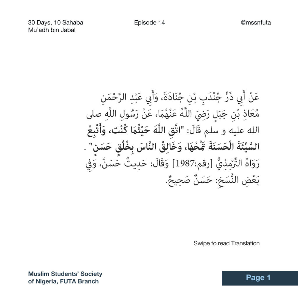 AN HADEETH NARRATED BY MU’ADH BIN JABAL.