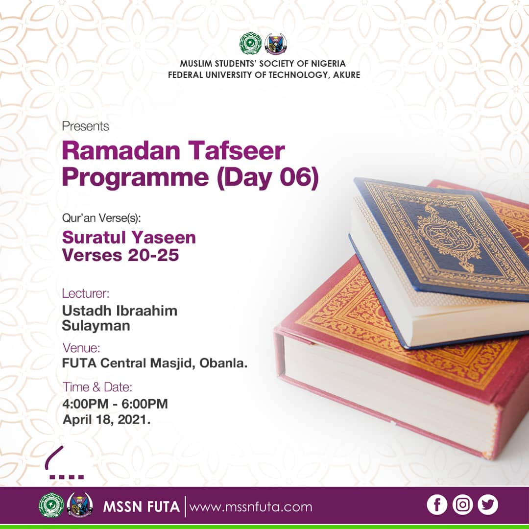 Welcome to another edition of the MSSN FUTA Ramadan Tafseer for Day 06