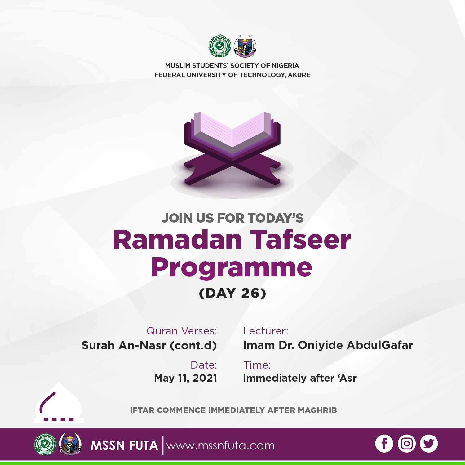 Listen/Download MSSN FUTA Tafseer for Day 26